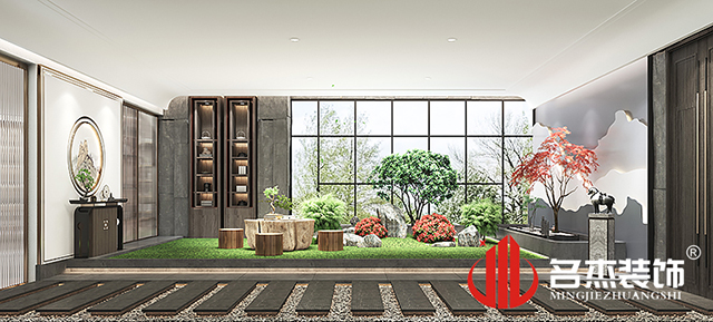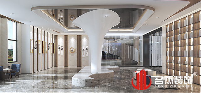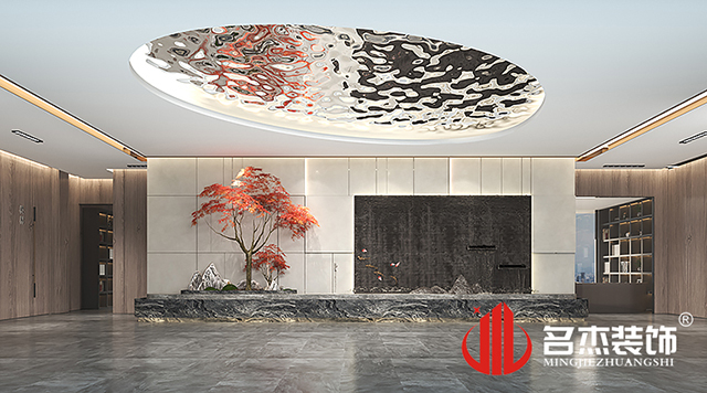 设计说明:整体办公楼富二代成版人颤音app设计当中加入了很多不同的造型,让空间变得更加有设计感。展厅区域则使用弧形吊顶造型,让流动路线跟着弧线走,起着一个引导的作用,有着更深的沉浸感。螺旋式楼梯因其流线造型美观,且有着典雅的气息,深受客户的喜爱。休闲区域则使用较为传统的样式,绿植,鹅卵石铺垫的过道,空间中无处不透露着中式典雅的风格。